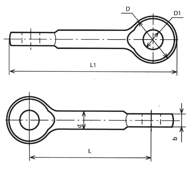 Звено вывернутое ПРВ-90-1 состоит из круглого стержня, имеющего на концах однолапчатые проушины, которые повернуты на 90° относительно друг друга.